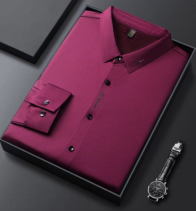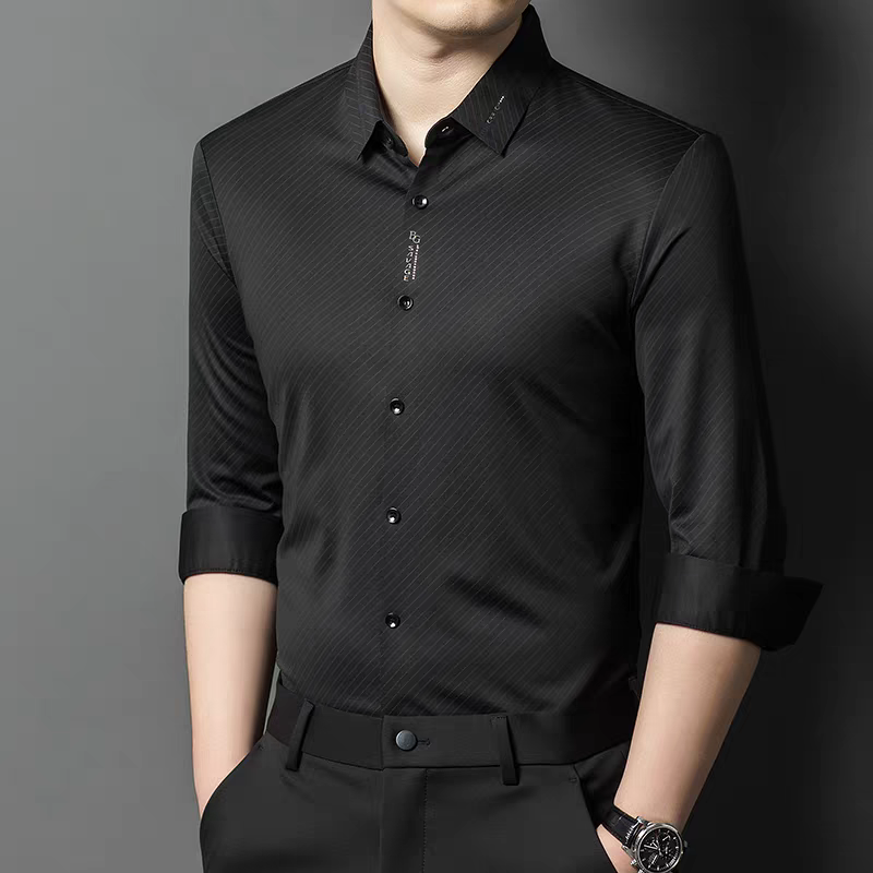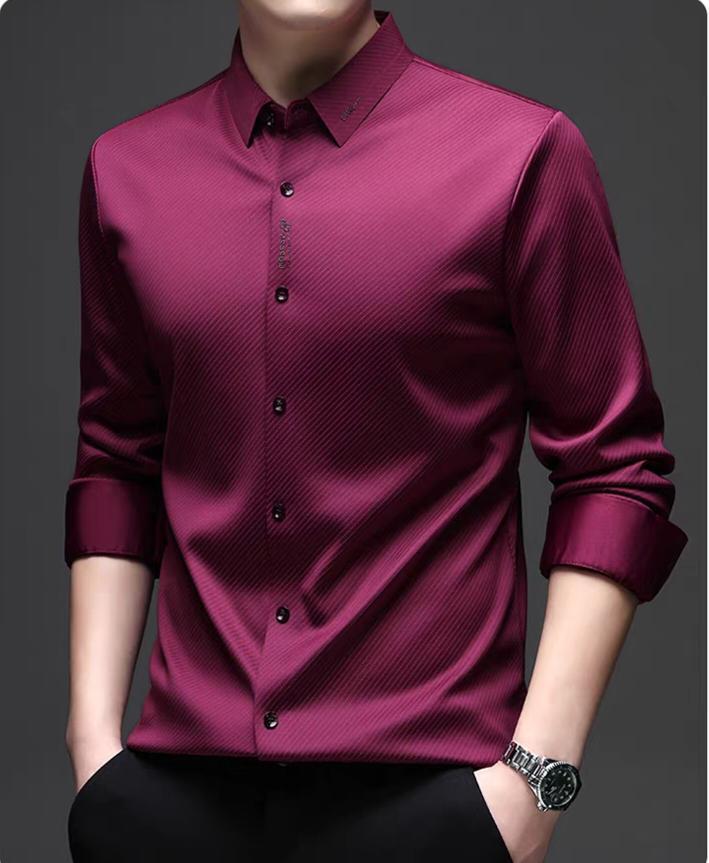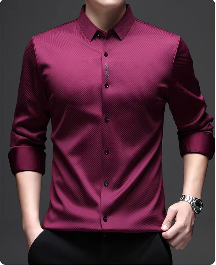 Distinctive Textured Finish: Features fine diagonal micro-lines that give a premium sheen and depth to the shirt’s surface.